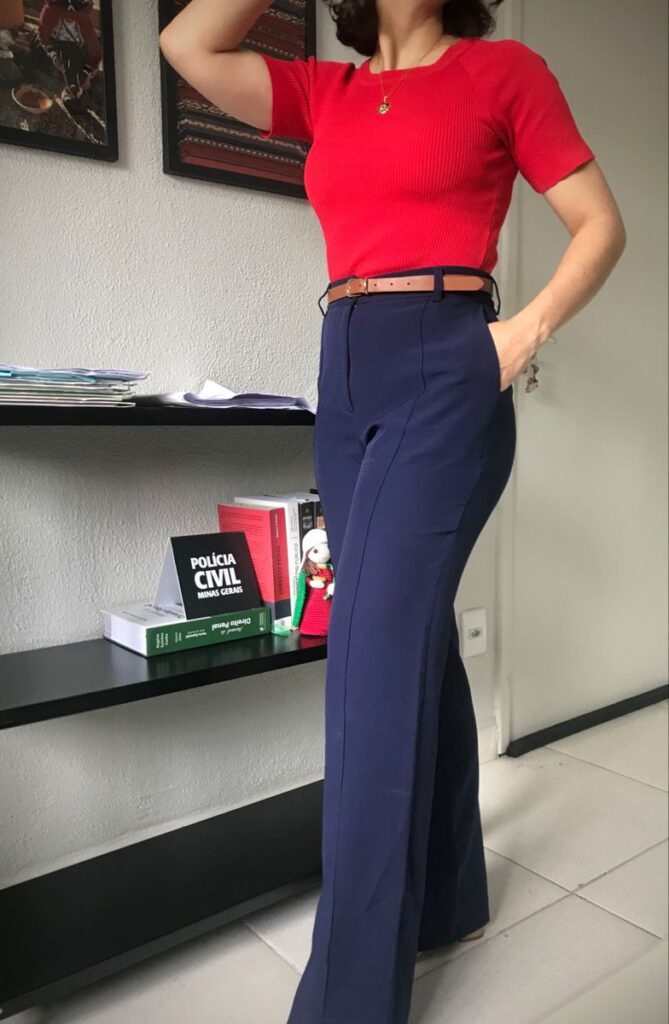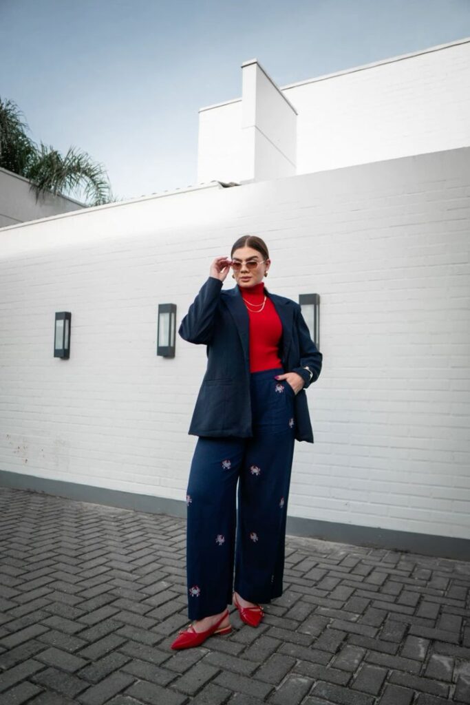 A primeira combinação que vamos explorar é a mistura do azul marinho com o vermelho. Essa combinação oferece um contraste incrível, mas sem perder a elegância. O vermelho, com sua energia vibrante, traz vida ao look, enquanto o azul marinho mantém a sofisticação e o toque de classe. Essa combinação é perfeita para quem quer um visual marcante, mas com uma pegada sofisticada ao mesmo tempo. Ela funciona tanto para eventos mais formais quanto para ocasiões informais, quando você quer um look cheio de personalidade.