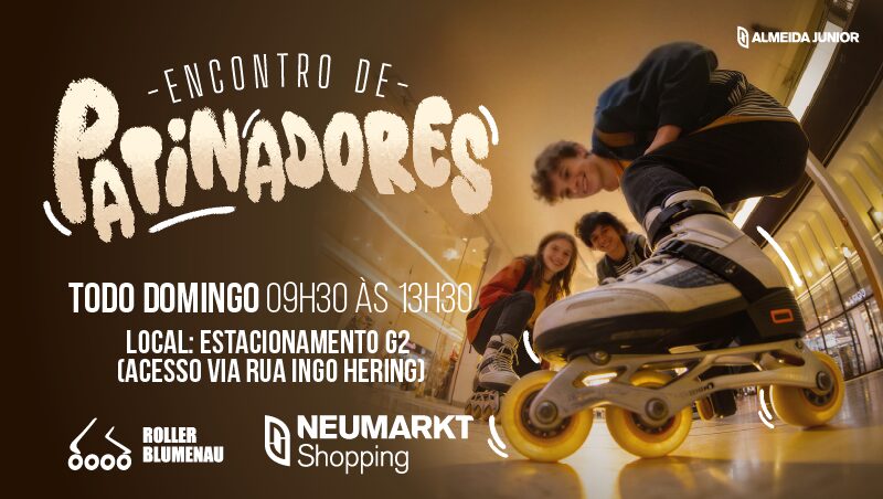 Que tal calçar os patins e aproveitar os domingos de uma forma diferente? O Grupo Roller Blumenau, com uma década de atuação na cidade e nove anos de parceria com o Neumarkt Shopping, faz encontros semanais na garagem G2 do shopping. Além disso, o grupo está aberto para receber novos integrantes. É uma oportunidade para quem quer aprender a patinar ou aprimorar as habilidades em um ambiente seguro e divertido.